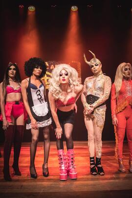 Pose de elenco do espetáculo Cabaré das Divas, Teatro Goiânia Ouro