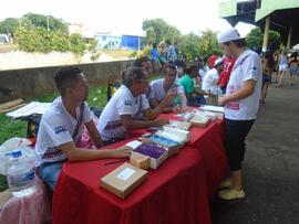 Marco Aurélio de Oliveira na banca de distribuição de preservativos no Esquenta LGBT, primeira edição, 'Grito de Carnaval, no Cepal do Setor Sul